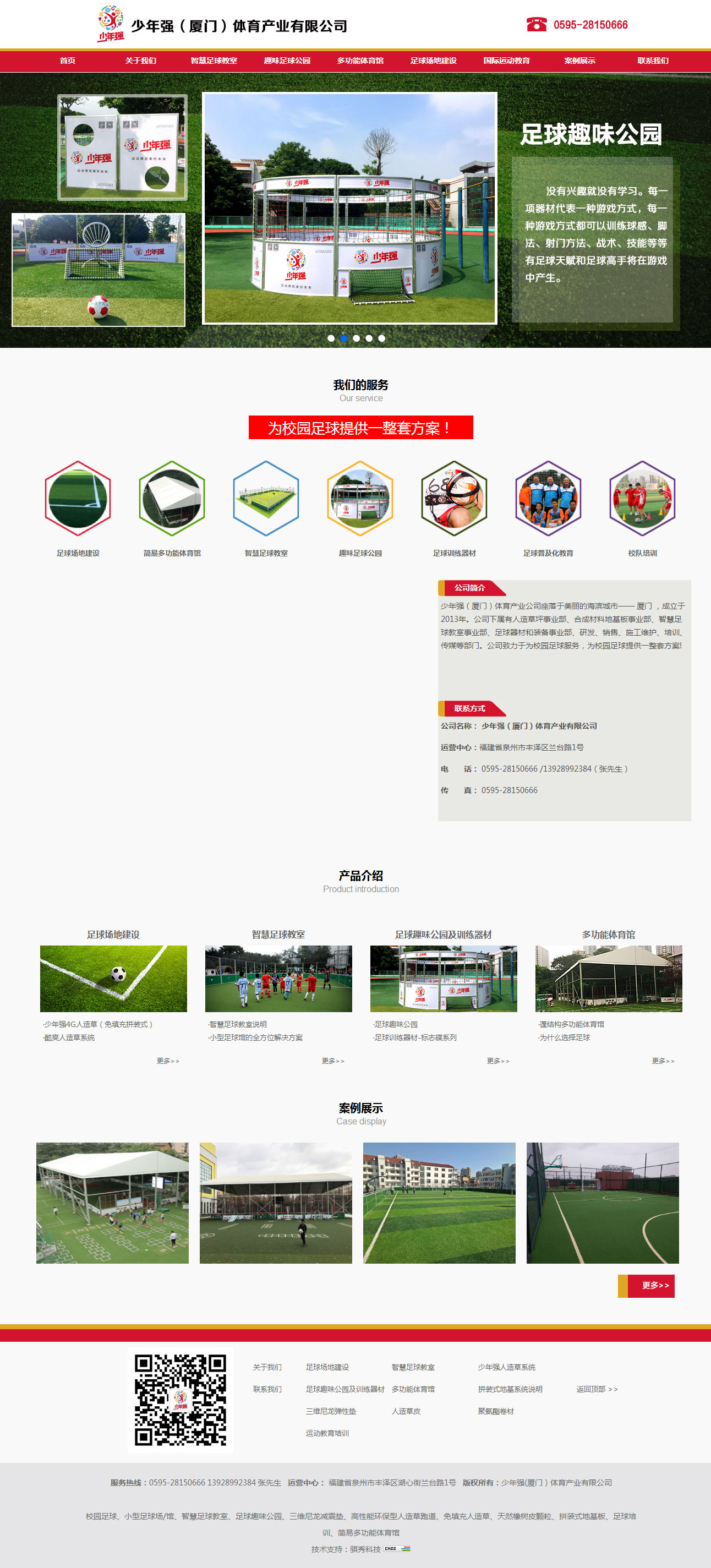 少年強(廈門)體育產業公司座落于美麗的海濱城市—廈門,成立于2013年。公司下屬有人造草坪事業部、合成材料地基板事業部、智慧足球教室事業部、足球器材和裝備事業部、研發、銷售、施工維護、培訓、傳媒等部門。