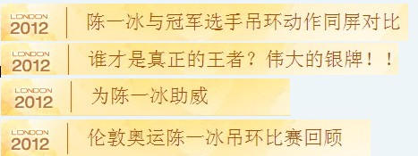 在這張圖中,騰訊的專題做的挺到位的,title:" 陳一冰完美表現意外摘銀_騰訊奧運_騰訊網",其中在專題中,用四個板塊分別詮釋了陳一冰這次奧運之旅的過程,以及這些被黑事件的一下質疑,如同,