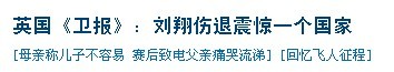 英國(guó)《衛(wèi)報(bào)》就用了這樣一個(gè)標(biāo)題,說博爾特輕松的拿到了小組第一,但是頭條被劉翔給拿走了。接下來他還有一句話,他說劉翔的傷退震驚了一個(gè)國(guó)家,寂靜了一個(gè)體育場(chǎng)。是的,當(dāng)時(shí)我在體育場(chǎng)里頭,我能感覺到那種寂靜,雖然還有其它的聲音,因?yàn)楫吘故怯?guó)的選手跑到了小組第一,但是我內(nèi)心,當(dāng)時(shí)我覺得天地白茫茫得那樣一種感受是非常非常的強(qiáng)烈。