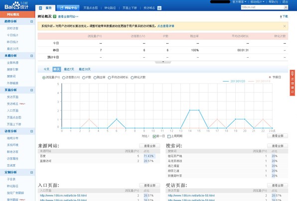 接下來說一說百度,百度統計的功能性挺不錯,而在操作的便捷性方面也還可以,百度在功能與操作性這二者中做到了平衡,并且界面相對于CNZZ、51la更美觀,也非常符合中國人的使用習慣,百度做到這一點也實屬不易。
