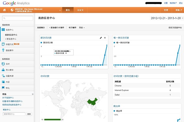 最后再來說說Google Analytics,在數據分析上它無人能及,但是在操作性上就差太多了。正是由于Google Analytics功能的強大,它操作界面看起來非常的“博大精深”,并且非常不符合中國人的使用習慣。其實廣大站長們對于統計數據的需求大部分都是流量、IP、來源等,大量的進行深度的分析需求并不多,所以在這一點上Google是不及其他3位的。