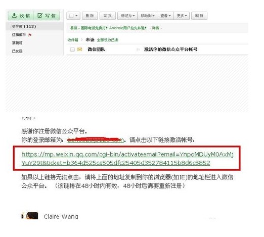 注冊郵箱收到郵件,點擊進入驗證鏈接