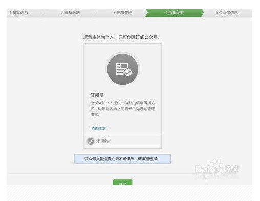 點擊創建訂閱工作號,灰色標志變綠色,然后點擊繼續