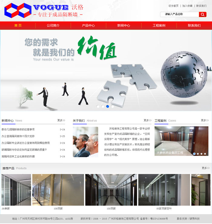 2015年5月10日,騏秀科技簽約廣州沃格裝飾工程有限公司網(wǎng)站建設(www.vogueofficezs.com),為其完成網(wǎng)站建設。