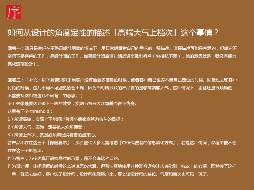 下面是在網(wǎng)上找的一些網(wǎng)友對(duì)高端上檔次的一些理解和技巧: