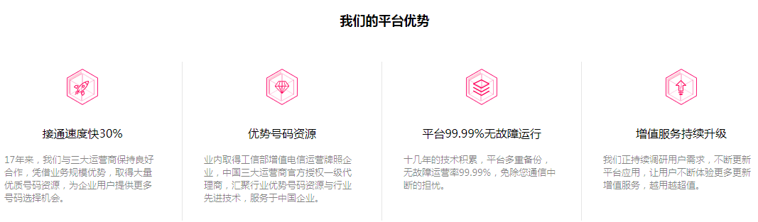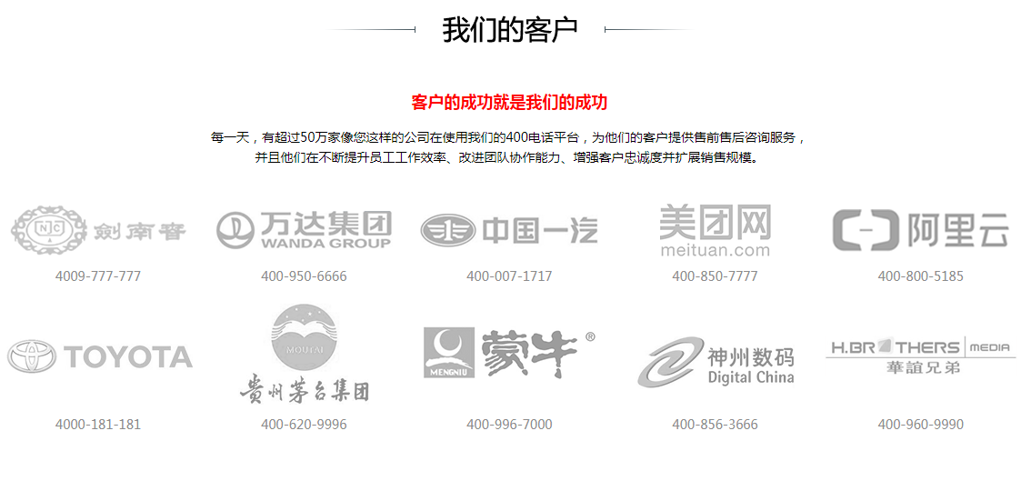 17年來,我們憑借深厚的行業積累,匯聚優勢號碼資源與行業先進技術,服務于中國企業,目前已為超過50萬家企業用戶提供400通信平臺服務。